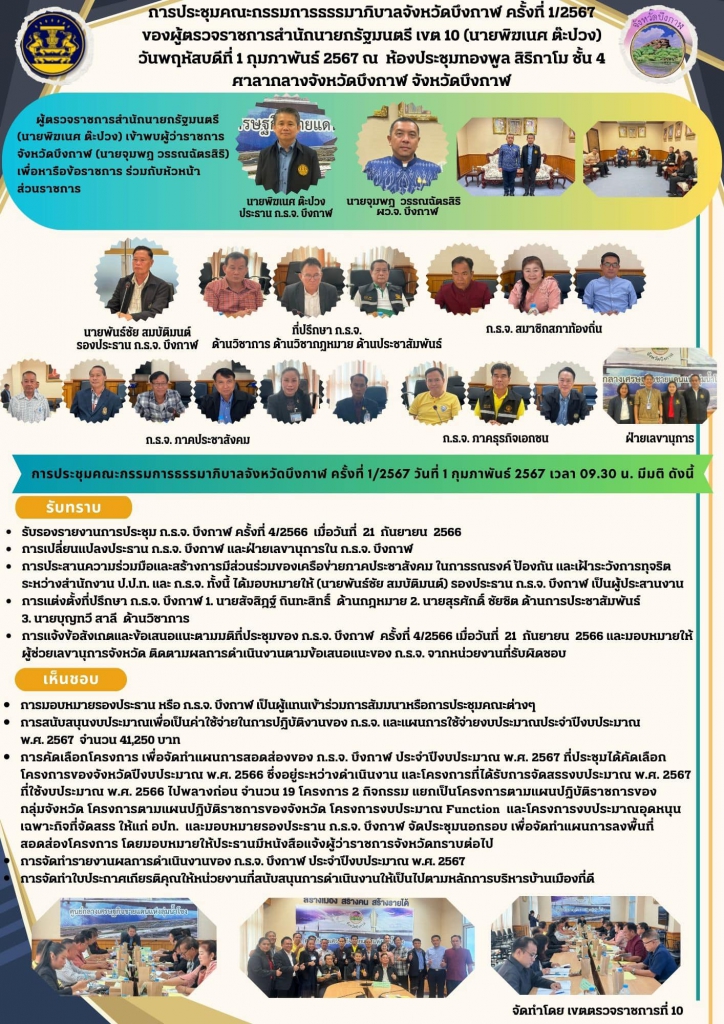 วันพฤหัสบดีที่ 1 กุมภาพันร์ 2567 ณ ห้องประชุมทองพูล สิริภาโม ชั้น 4 ศาลากลางจังหวัดบึงกาฬ จังหวัดบึงกาฬ